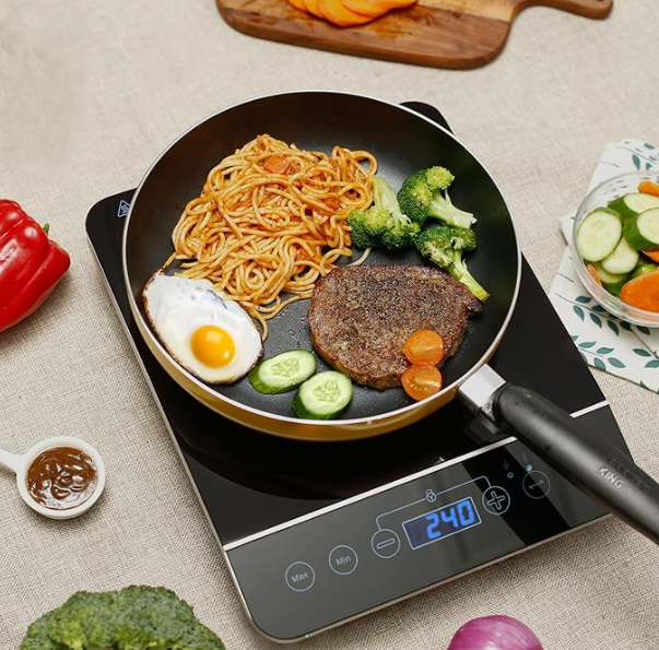 🍳 Compatibilità universale – Funziona con pentole e padelle a fondo magnetico in acciaio inox o ghisa.